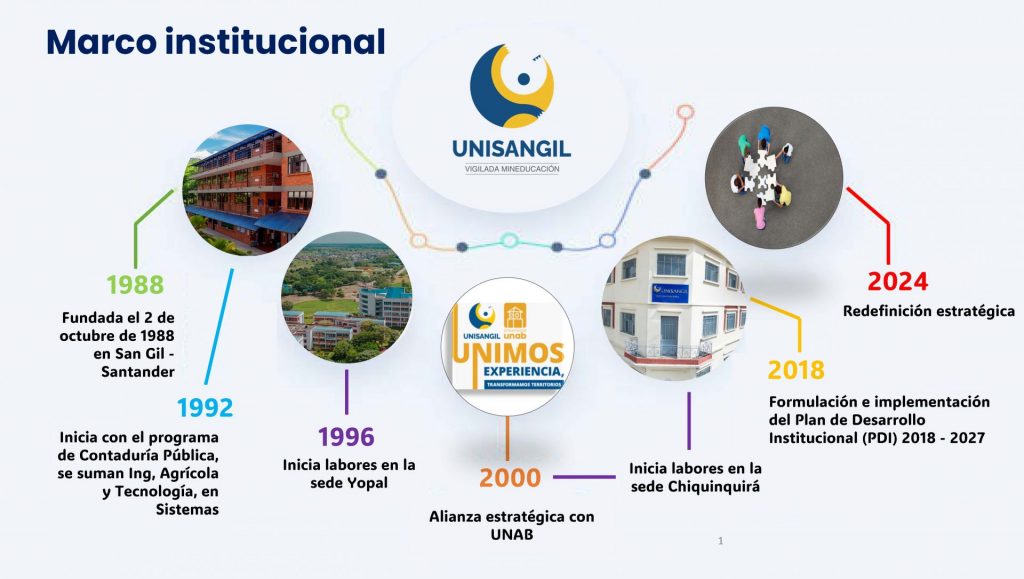 Dando cumplimiento a su vocación basada en la Economía Solidaria, UNISANGIL ha desempeñado un papel de primer orden en la consolidación de un capital humano integral que le ha permitido trascender fronteras. El 20 de julio de 1992 abrió sus puertas en San Gil. Más tarde, logró expandirse a territorios aledaños como Yopal, Casanare en 1996 y Chiquinquirá, Boyacá en el 2000. Con el inicio del milenio, UNISANGIL firmó la alianza de cooperación con la Universidad Autónoma de Bucaramanga, UNAB, con la que fortaleció su oferta académica para responder a las necesidades y problemáticas de sus zonas de influencia. Desde entonces, mantiene su compromiso con el desarrollo social, económico y ambiental del nororiente colombiano a través de sus programas académicos, de investigación y extensión.